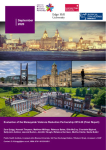 Quigg, Zara, Timpson, Hannah, Millings, Matthew, Bates, Rebecca, McCoy, Ellie, Bigland, Charlotte, Ashton, Sally-Ann, Burton, Leanne, Hough, Jennifer orcid iconORCID: 0000-0002-6206-0522 et al (2020) Evaluation of the Merseyside Violence Reduction Partnership 2019-20. Project Report. Liverpool John Moores University (LJMU).