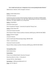 Integration of health and social care has been suggested as a solution to overcome the increasing financial and service pressures on the UK healthcare system. This commentary aimed to critically appraise a systematic review that investigated the national and international evidence base for the impact of integrating care, both on perceived and actual service delivery outcomes. The authors also aimed to identify the review's implications for practice, policy and future research.