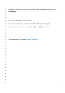 In no-till agroecosystems, presence of the earthworm Lumbricus terrestris L. can be a key driver in the replenishment of soil organic matter stocks post-harvest, through surface residue foraging and incorporation. The impact on such systems under different climatic conditions is, however, still unquantified. A field experiment was designed to determine incorporation of cereal harvest residues at three no-till agricultural sites in boreal conditions (SW Finland) focusing on L. terrestris impacts over the period from autumn harvest to spring sowing. Either spring barley, wheat or oats were cultivated at the sites. Following the harvests, representative masses of residues were applied on small experimental plots (0.25 m2) with cleaned soil surfaces in areas of inherently high (LT+: 10.6 ± 2.1 ind. 0.25 m-2) and low (LT-: 1.8 ± 0.7 ind. 0.25 m-2) L. terrestris density within the fields. Residues were covered with metal mesh caging and left until spring sowing, when changes in residue mass were recorded and plots sampled for earthworms. The reduction of straw residue mass varied between sites, from no difference between the LT+ and LT- treatments to 19 % and 59 % higher mass reduction in LT+. Amount of earthworm castings on the residues was also quantified and findings indicated a positive correlation with earthworm (also endogeic) density. For L. terrestris, earthworm species abundance relationships indicated competitive interaction with epigeics and positive interaction with endogeics. Results showed that L. terrestris foraging can enhance the incorporation of cereal surface residues outside of the boreal growing season and that earthworm surface casting also has a role in residue burial. However, the increase of incorporation by L. terrestris activity, interrupted by winter conditions, was moderate and did not lead to marked exposition of the soil surface by experimental end, even at those plots with the highest L. terrestris foraging. The incorporation rate estimates may have been unrepresentative due to the exceptionally late harvest during the study period. Investigations covering the whole year from multiple growing seasons are needed for a comprehensive assessment of earthworm impacts on crop surface residue dynamics.