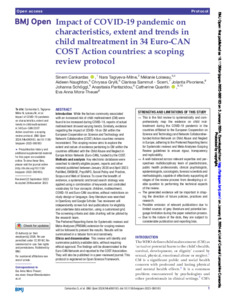 Impact of COVID-19 pandemic on characteristics, extent and trends in child maltreatment in 34 Euro-CAN COST Action countries: a scoping review protocol.