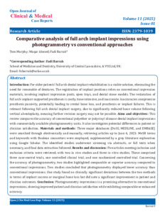 Comparative analysis of full arch implant impressions using photogrammetry vs conventional approaches.