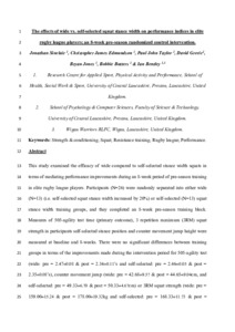 This study examined the efficacy of wide compared to self-selected stance width squats in terms of mediating performance improvements during an 8-week period of pre-season training in elite rugby league players. Participants (N=26) were randomly separated into either wide (N=13) (i.e. self-selected squat stance width increased by 20%) or self-selected (N=13) squat stance width training groups, and they completed an 8-week pre-season training block. Measures of 505-agility test time (primary outcome), 3 repetition maximum (3RM) squat strength in participants self-selected stance position and counter movement jump height were measured at baseline and 8-weeks. There were no significant differences between training groups in terms of the improvements made during the intervention period for 505-agility test (wide: pre = 2.47±0.08 & post = 2.34±0.11’s and self-selected: pre = 2.46±0.05 & post = 2.35±0.08’s), counter movement jump (wide: pre = 42.68±9.57 & post = 44.65±9.04cm, and self-selected: pre = 49.33±6.70 & post = 50.33±4.67cm) or 3RM squat strength (wide: pre = 159.00±15.24 & post = 178.00±19.32kg and self-selected: pre = 168.33±11.73 & post = 185.56±16.48kg). As such the findings from the current randomized controlled trial suggest that there is not sufficient evidence to suggest that wide stance width squats represent a more efficacious method of resistance training prescription in elite rugby league.