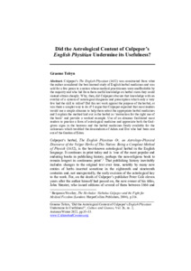 Did the Astrological Content of Culpeper’s English Physitian Undermine its Usefulness?