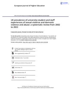 UK prevalence of university student and staff experiences of sexual violence and domestic violence and abuse: a systematic review from 2002 to 2022.