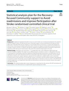 Statistical analysis plan for the Recovery-focused Community support to Avoid readmissions and improve Participation after Stroke randomised controlled clinical trial.