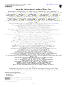 Ji, Alexander P., Curtis, Sanjana, Storm, Nicholas, Chandra, Vedant, C. Schlaufman, Kevin, G. Stassun, Keivan, Heger, Alexander, Pignatari, Marco, Price-Whelan, Adrian M. et al (2024) Spectacular Nucleosynthesis from Early Massive Stars. Astrophysical Journal Letters, 961 (2). ISSN 2041-8205
