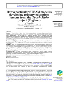 How a particular STEAM model is developing primary education: lessons from the Teach-Make project (England).