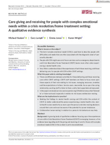 Care giving and receiving for people with complex emotional needs within a crisis resolution/home treatment setting: A qualitative evidence synthesis.