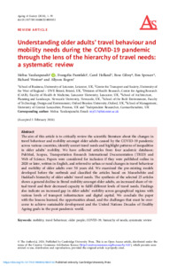 Understanding older adults’ travel behaviour and mobility needs during the COVID-19 pandemic through the lens of the hierarchy of travel needs: A systematic review.