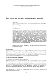 Ban, Liyuan (2024) Data privacy and protection in communication networks. Applied and Computational Engineering, 38 (1). pp. 131-138. ISSN 2755-2721