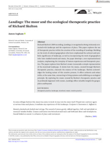 Ingham, James orcid iconORCID: 0000-0001-8477-3147 (2024) Landings: The moor and the ecological therapeutic practice of Richard Skelton. Area, 56 (2). ISSN 0004-0894