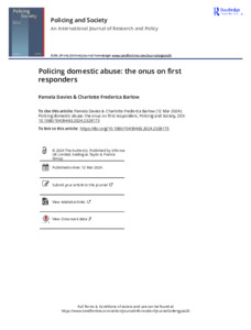 The police first responder has a central role in the multi-agency response to domestic abuse in most jurisdictions and is uniquely placed to solicit information from the victim-survivor about the experiences and behaviours they have witnessed first-hand. The College of Policing advises that first response officers have a dual role when attending domestic callouts: to recognise signs of abuse and prevent offences from occurring, and identify criminal offences so that offenders can be brought to justice. The frontline encounter by police is a pivotal moment for myriad reasons. Sharing results and reflections from our experiences of evaluating a number of innovative approaches to the policing of domestic abuse in the UK context, we illustrate the onus placed on the police first responder. In the effort to improve the overall criminal justice response to domestic abuse, we argue that a greater appreciation of this onus is needed amongst all criminal justice and multi-agency practitioners. Furthermore, we argue that greater support for police first responders is needed to improve outcomes for all following this encounter.