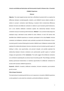 Brandão, Tânia, Brandão, Sónia, Prata, Ana Paula, Silva, Rosa, Abreu, Wilson, Riklikiene, Olga, Jarasiunaite-Fedosejeva, Gabija, González-Mesa, Ernesto, İsbir, Gözde Gökçe et al (2025) Posttraumatic growth in women after a childbirth experience: The influence of individual characteristics and intrusive and deliberate rumination. Psychological Trauma: Theory, Research, Practice, and Policy, 17 (5). pp. 1076-1085. ISSN 1942-9681