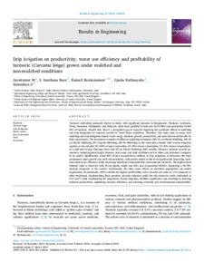 Drip irrigation on productivity, water use efficiency and profitability of turmeric (Curcuma longa) grown under mulched and non-mulched conditions.