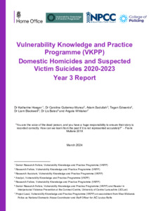Vulnerability Knowledge and Practice Programme (VKPP) Domestic Homicides and Suspected Victim Suicides 2020-2023 Year 3 Report.