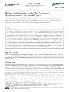Hinds, Joseph, Apaa, Ternenge, Parry, Rhys H., Withers, Amy J., MacKenzie, Laura, Staley, Ceri, Morrison, Joshua, Bennett, Malcolm, Bremner-Harrison, Samantha et al (2024) Multiple novel Caliciviruses identified from stoats (Mustela erminea) in the United Kingdom. Access Microbiology, 6 (7).