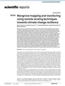 Mangrove mapping and monitoring using remote sensing techniques towards climate change resilience.