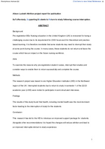 SuTuRe study. Supporting Students to Return to study following course interruption.