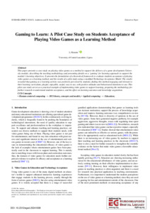 Gaming to Learn: A Pilot Case Study on Students Acceptance of Playing Video Games as a Learning Method
