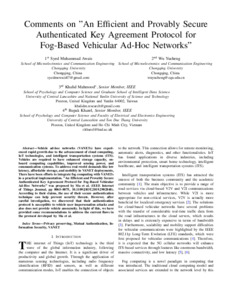 Comments on "An Efficient and Provably Secure Authenticated Key Agreement Protocol for Fog-Based Vehicular Ad-Hoc Networks".