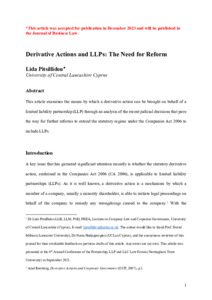 Pitsillidou, Lida (2025) Derivative Actions and LLPs: The Need for Reform. Journal of Business Law, 68 . pp. 123-143. ISSN 0021-9460