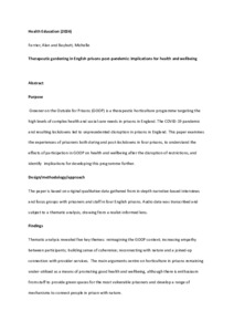 Therapeutic gardening in English prisons post-pandemic: implications for health and wellbeing.