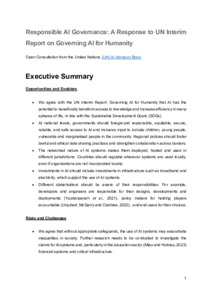 Stahl, Bernd, Townsend, Beverley, Maple, Carsten, Vincent, Charles, Sampson, Fraser, Gilbert, Geoff, Smith, Helen, Deshmukh, Jayati, Ross, Jen et al (2024) Responsible AI governance: A response to UN interim report on governing AI for humanity. Project Report. University of Southampton.