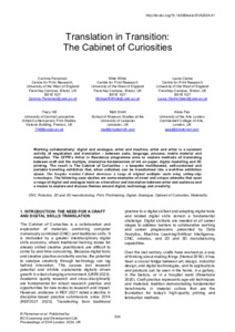 Working collaboratively: digital and analogue, artist and machine, artist and artist is a constant activity of negotiation and translation – between code, language, process, matrix material and metaphor. The CFPR’s Artist in Residence programme aims to explore methods of translating between craft and the multiple, interactive fundamentals of ink on paper, digital modelling and 3D printing. The result is The Cabinet of Curiosities - a bespoke multifaceted, self-contained and portable travelling exhibition that, when unfolded, can be transformed into a wall-free exhibition space. The bespoke wooden Cabinet showcases a range of original multiples made using cutting-edge technologies. The following case studies are some examples of novel and unique artworks that span a range of digital and analogue tools as a transition and translation between artist and audience and a means to explore and discuss themes around digital, technology and creativity.