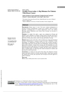 Methods: To conduct this study, a query was conducted on Persian and English sources databases as Scoupus, Google Scholar, Pub Med, and Science Direct during the last 24 years using the following keywords: breast cancer, infertility, fertility preservation, oocyte freezing, and embryo freezing.