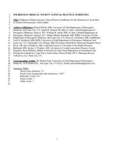Fink, Patrick B., Wheeler, Albert R., Smith, William R., Brant-Zawadzki, Graham, Lieberman, James R., McIntosh, Scott E., Van Tilburg, Christopher, Wedmore, Ian S., Windsor, Jeremy et al (2024) Wilderness Medical Society Clinical Practice Guidelines for the Treatment of Acute Pain in Austere Environments: 2024 Update. Wilderness & Environmental Medicine, 35 (2). ISSN 1080-6032