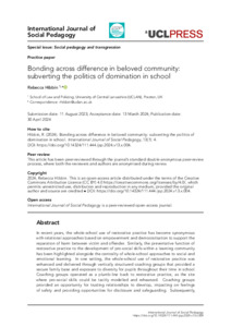 In recent years, the whole-school use of restorative practice has become synonymous with relational approaches based on empowerment and democratisation to support the reparation of harm between victim and offender. Similarly, the preventative function of restorative practice to the development of pro-social skills within a learning community has been highlighted alongside the centrality of whole-school approaches to social and emotional learning. In one setting, the whole-school use of restorative practice was enhanced and delivered through vertically structured coaching groups that provided a secure family base and exposure to diversity for pupils throughout their time in school. Coaching groups operated as a plumb-line back to restorative practice, as the site where pro-social skills could be tacitly modelled and rehearsed. Coaching groups provided an opportunity for trusting relationships to develop, impacting on feelings of safety and providing opportunities for disclosure and safeguarding. Subsequently, collective responsibility for behaviour was supported, creating a distributed network of relational accountability and transforming how sanctions were administered, to create a non-hierarchical and relational system of discipline. This relates to transgressive forms of education and a socially orientated pedagogy, emphasising accountability alongside a whole-school ethos of care. Responsibility for behaviour is reframed from a singular to a collective pursuit, where relational responsibility eschews the alienating effect of individual notions of blame. Ultimately, this transformation subverted the classroom’s politics of domination, allowing perceptions of learning and conflict to become entirely reframed.