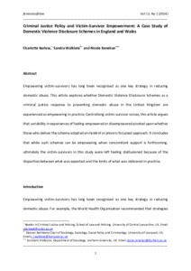 Criminal Justice Policy and Victim-Survivor Empowerment: A Case Study of Domestic Violence Disclosure Schemes in England and Wales.