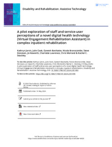 A pilot exploration of staff and service-user perceptions of a novel digital health technology (Virtual Engagement Rehabilitation Assistant) in complex inpatient rehabilitation.