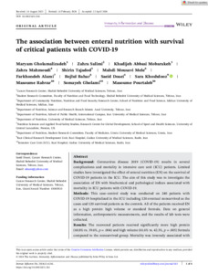 Gholamalizadeh, Maryam, Salimi, Zahra, Mobarakeh, Khadijeh Abbasi, Mahmoudi, Zahra, Tajadod, Shirin, Mousavi Mele, Mahdi, Alami, Farkhondeh, Bahar, Bojlul, Doaei, Saeid et al (2024) The association between enteral nutrition with survival of critical patients with COVID‐19. Immunity, Inflammation and Disease, 12 (5).