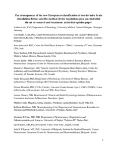 Antal, Andrea, Ganho-Ávila, Ana, Assecondi, Sara, Barbour, Tracy, Bjekić, Jovana, Blumberger, Daniel M, Bolognini, Nadia, Brunelin, Jerome, Chanes, Lorena et al (2024) The consequences of the new European reclassification of non-invasive brain stimulation devices and the medical device regulations pose an existential threat to research and treatment: An invited opinion paper. Clinical Neurophysiology, 163 . pp. 280-291. ISSN 1388-2457