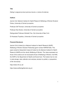This review brings together the views of women and maternity care professionals on routine discussion of previous trauma in the perinatal period. We included 25 papers, from five countries, published between 2001 and 2022.