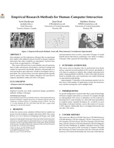 This course will teach how to pose testable research questions, how to make and measure observations, and how to design and conduct an experiment. Specifically, attendees will participate in a real experiment to gain experience as both an investigator and as a participant. The second session covers the statistical tools typically used to analyze data. Most notably, attendees will learn how to organize experiment results and write a CHI paper.