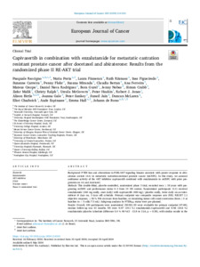 Rescigno, Pasquale, Porta, Nuria, Finneran, Laura, Riisnaes, Ruth, Figueiredo, Ines, Carreira, Suzanne, Flohr, Penny, Miranda, Susana, Bertan, Claudia et al (2024) Capivasertib in combination with enzalutamide for metastatic castration resistant prostate cancer after docetaxel and abiraterone: Results from the randomized phase II RE-AKT trial. European Journal of Cancer, 205 . p. 114103. ISSN 0959-8049