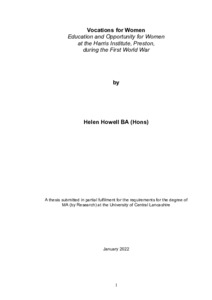 Howell, Helen (2022) Vocations for Women. Education and Opportunity for Women at the Harris Institute, Preston, during the First World War. Masters thesis, University of Central Lancashire.