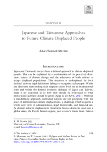 Martin, Kate Hannah (2024) Japanese and Taiwanese Approaches to Future Climate Displaced People. In: Refugees and Asylum Seekers in East Asia. Palgrave Macmillan Studies on Human Rights in Asia . Springer, pp. 333-363. ISBN 978-981-97-2867-1