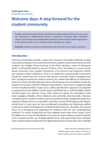 Student community is one of the key contributors towards student satisfaction. In 2022–2023 the Department of Mathematical Sciences, University of Liverpool, held re-designed welcome day(s) for the new undergraduate students in order to boost student engagement. In this article we reflect on our academic practice based on this project.