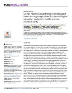 Mental health coping strategies and support needs among marginalised further and higher education students in the UK: A cross-sectional study.