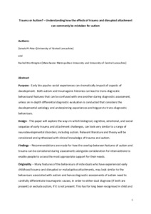 This paper will explore the ways in which biological, cognitive, emotional and social sequelae of early trauma and attachment challenges, can look very similar to a range of neurodevelopmental disorders, including autism. Relevant literature and theory will be considered and synthesised with clinical knowledge of trauma and autism.