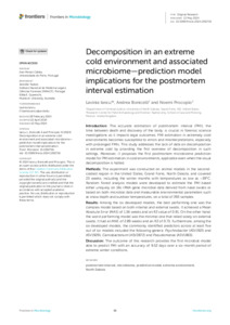Decomposition in an extreme cold environment and associated microbiome—prediction model implications for the postmortem interval estimation.