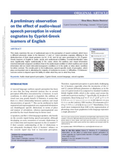 A preliminary observation on the effect of audio-visual speech perception in voiced cognates by Cypriot-Greek learners of English.