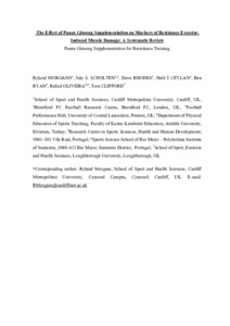 Morgans, Ryland, Scholten, Jule S., Rhodes, Dave, Ceylan, Halil İ., Ryan, Ben, Oliveira, Rafael and Clifford, Tom (2024) The effect of Panax ginseng supplementation on markers of resistance exercise-induced muscle damage: a systematic review. Journal of Sports Medicine and Physical Fitness, 64 (10). pp. 1048-1059. ISSN 18271928