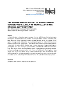 The RECOOP Over 50’s Peer-led Buddy Support Service for Older People in Prison: ‘radical help’ as ‘mutual aid’ in the Criminal Justice System?