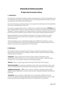 UNSPECIFIED (2024) University of Central Lancashire Intellectual Property Spin-Out Formation Policy. University of Central Lancashire, University of Central Lancashire. (Unpublished)