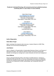 Pandemic Continuity Planning: will coronavirus test local authority business continuity plans? A case study of a local authority in the north of England.
