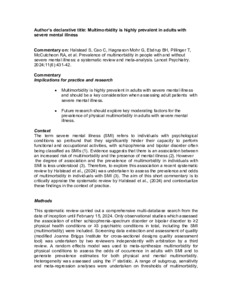 Multimorbidity is highly prevalent in adults with severe mental illness.